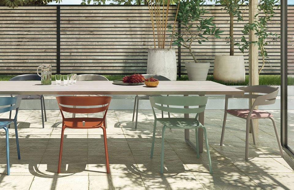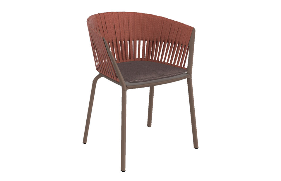 Die gebogene und umhüllende Form dieses Stuhls bietet den Komfort und das Wohlbefinden des Körpers. Die Hochwertige Pulverbeschichtung ist in 14 verschiedenen trendigen Farben wählbar und gibt dem Sessel den letzten Schliff. Die leicht ausgestellten Füsse aus Aluminium sind mit Kunststofffusskappen ausgestattet.
